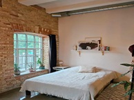 Lejlighedens urbane stil kommer til udtryk ved de mørke køkkenelementer, de rå murstensvægge og store vinduer med sprosser. Lejlighedens kvadratmeter fordeler sig over et entréområde, et køkken med opvaskemaskine og god opbevaringsplads, et opholdsrum og soveværelse i ét med flytbare skabe, samt et nyrenoveret badeværelse med smukke fliser, separat bruseniche og vaskemaskine.