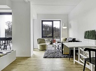 Soveværelset har indbygget opbevaring og et gulv-til-loft-vindue, mens en skydevæg giver mulighed for at åbne rummet mod det primære opholdsrum, hvis det ønskes. Badeværelset er rummeligt stort og inkluderer en kombineret vaskemaskine og tørretumbler. Yderligere faciliteter i bygningen inkluderer en elevator, et privat opbevaringsrum i kælderen og sikker indendørs cykelparkering. Der er installeret et blødgøringssystem for at reducere mineralophobning. Kælderparkeringspladser kan også lejes, afhængigt af tilgængelighed.