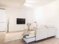Badeværelset er færdiggjort med kvalitetsmaterialer og har en regnbruser samt vaskemaskine og tørretumbler i enheden for ekstra bekvemmelighed.