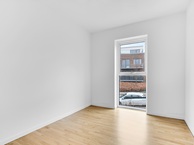 Interiøret er færdigt med gulvvarme, lyst parketgulv og hvide armaturer, hvilket giver en neutral base, der giver mulighed for personlig tilpasning. Derudover har lejligheden en charmerende terrasse og et opbevaringsrum for ekstra bekvemmelighed.