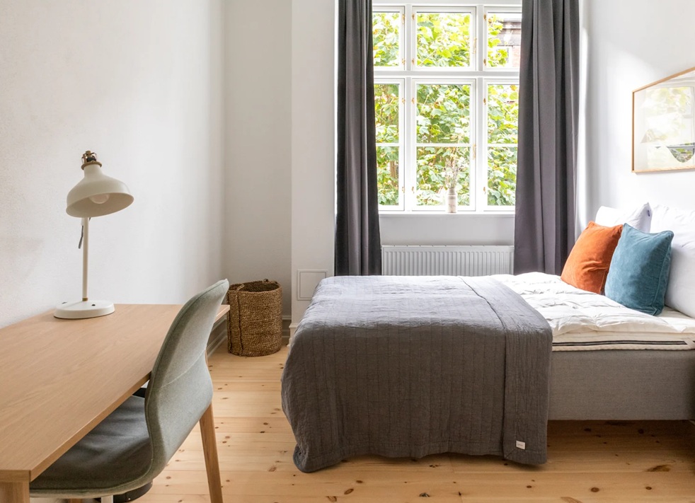 Lejligheden blev fuldstændig renoveret i 2022 og har 5 soveværelser, hvoraf 1 er til par, 2 pæne badeværelser, et rummeligt køkken med spiseplads og en separat stue.